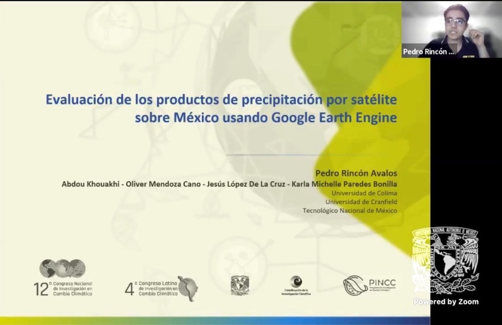 El Ing. Pedro Rincón Ávalos presentó una “Evaluación de productos satelitales de precipitación sobre México usando Google Earth Engine”, investigación que realizó a partir de estudiar el comportamiento de las precipitaciones en México, comparándolas con los datos que se puedan extraer del repositorio de datos de Google Earth Engine, que sirve para hacer cálculos en la Nube, “esto derivado de la necesidad en algunos estudios que requieren se les alimente con una variación de datos que, por su complejidad, no pudieran realizarse en un programa común”.