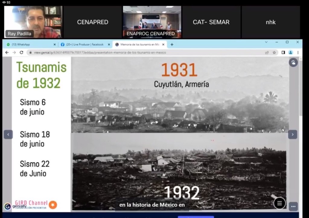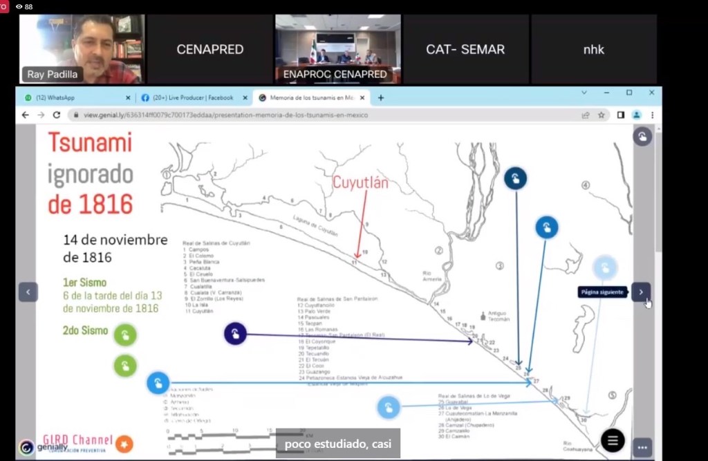 Este fin de semana, el Dr. Raymundo Padilla Lozoya participó con su ponencia “Memoria Histórica de los tsunamis en México”, en el Foro Internacional de Tsunamis costa de México, que organizaron la Coordinación Nacional de Protección Civil y el Centro Nacional de Prevención de Desastres en conmemoración del Día Mundial de Concienciación sobre Tsunamis 2022.