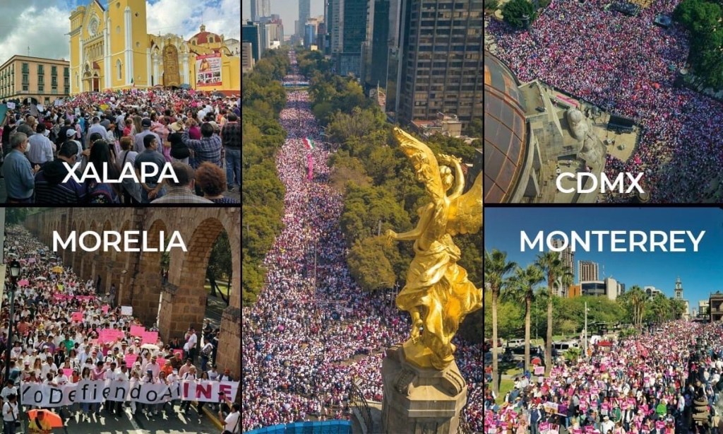 Reportan más de 200 mil asistentes a la marcha en defensa del INE en CDMX; Batres contabiliza sólo a 12 mil personas.