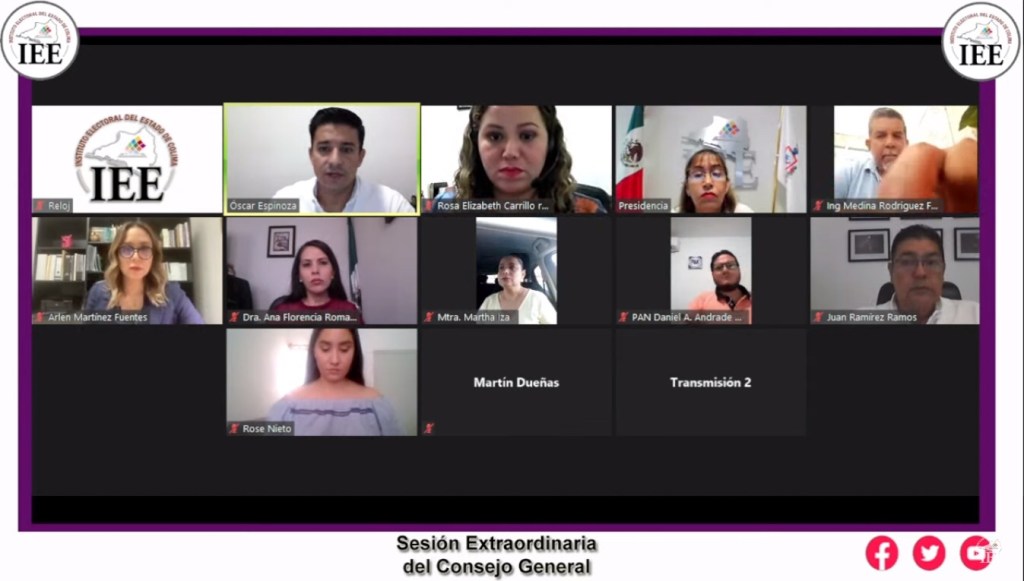 Durante la Vigésima Octava Sesión Extraordinaria del Periodo Interproceso 2021-2023, celebrada este jueves 24 de noviembre, el Consejo General del Instituto Electoral del Estado de Colima (IEE) aprobó la creación de la Comisión Temporal para la Constitución y Registro de Partidos Políticos Estatales y la Consejera Presidenta, María Elena Adriana Ruiz Visfocri presentó el Informe respecto de los trabajos para la Implementación de la Urna Electrónica para el Programa “Jornada Elecciones Estudiantiles”.