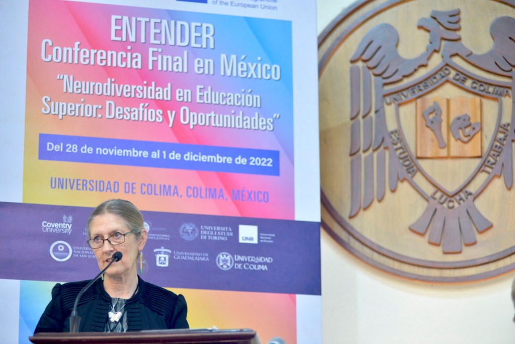 Con la charla “Esperanzas sobre los estudiantes neurodiversos”, en la que interactuó con las y los asistentes, la profesora Lynn Clouder inauguró las actividades de la Conferencia Final en México del proyecto internacional ENTENDER, financiado por ERASMUS+ de la Unión Europea y en el que participa la Universidad de Colima junto con otras ocho universidades de Argentina, España, Grecia y Reino Unido, donde está la universidad líder.