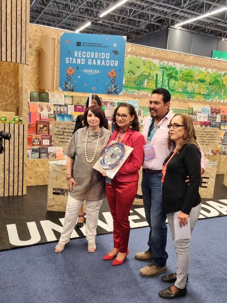 Marisol Schulz Manaut, directora general de la FIL, entregó dicho reconocimiento a la directora general de Servicios Universitarios, Ana Lilia Moreno Osegueda, en una breve pero emotiva ceremonia acompañada con la música de mariachi.