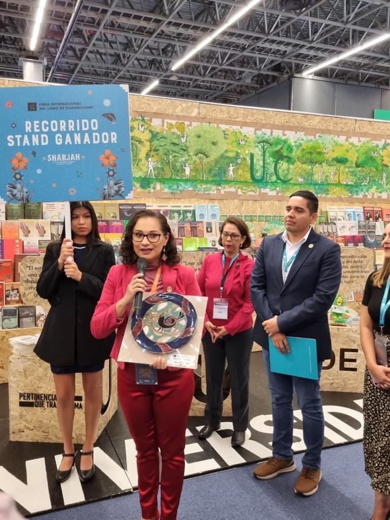 El pabellón editorial de la Universidad de Colima en la 36 Feria Internacional del Libro (FIL) de Guadalajara obtuvo este martes el premio al Mejor Stand 2022 en la Categoría de Espacio Sustentable.