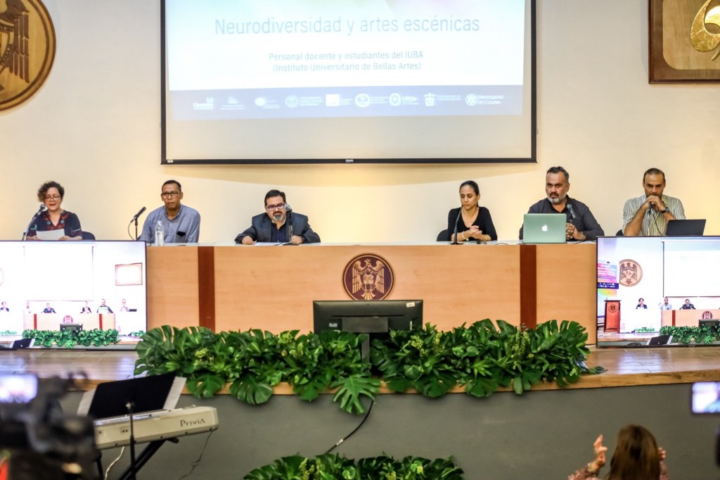 El panel se llamó “Neurodiversidad y artes escénicas, con personal docente y estudiantes del IUBA”, y en él participaron Alfredo Gerardo Mendoza, Gregorio Torres, Adriana León, Alejandro Vera y Rogelio Álvarez, narrando sus experiencias al trabajar con estudiantes que presentan Trastornos Generalizados del Desarrollo. Comentaron también lo importante que es el apoyo que han tenido de las familias.