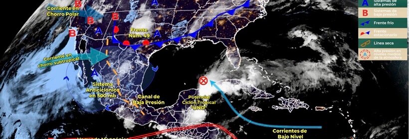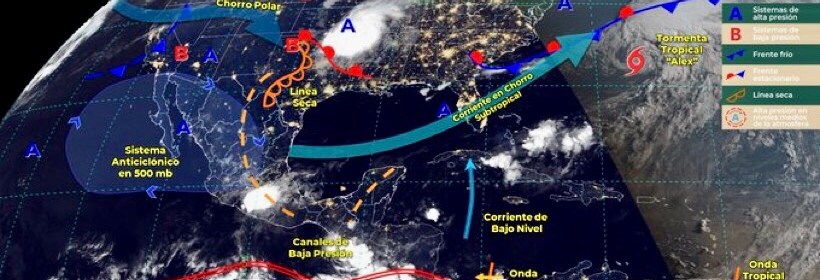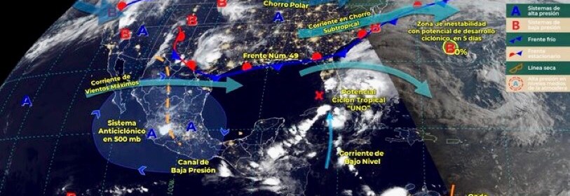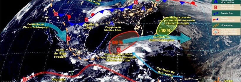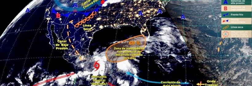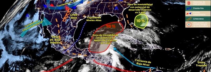 Pronóstico de lluvias puntuales fuertes en Durango, Jalisco, Michoacán, Guerrero, Puebla, Oaxaca y Chiapas. Este día, canales de baja presión en el interior y sureste del país, la entrada de humedad del Océano Pacífico e inestabilidad en niveles altos de la atmósfera, originarán lluvias puntuales fuertes en estados del norte, occidente, sur y sureste del territorio mexicano. Asimismo, una línea