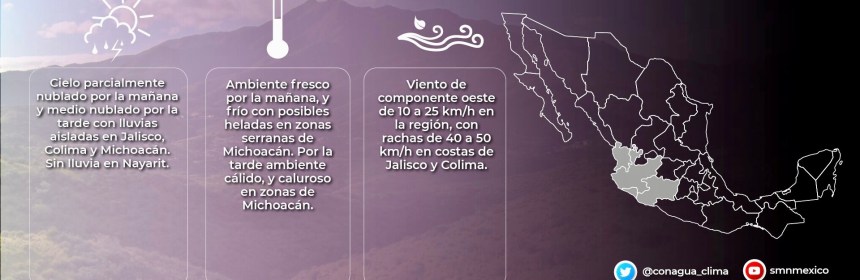Colima prevé cielo parcialmente nublado, sin lluvias y máximas de 30º a 35º C.