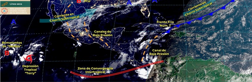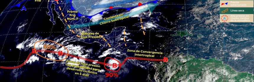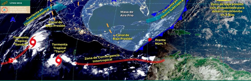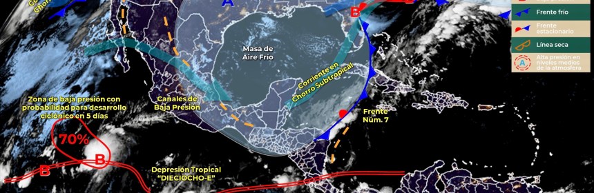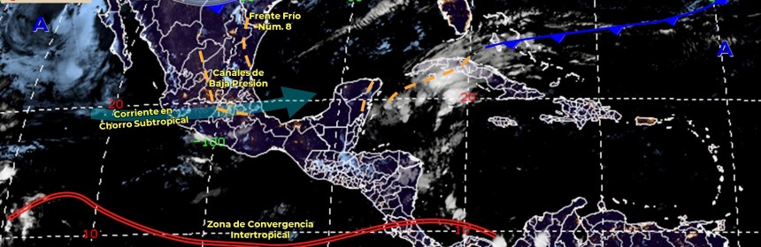 Para hoy, el frente frío Núm. 8 recorrerá lentamente el norte y noreste de México en interacción con un canal de baja presión sobre el oriente del país, ocasionará lluvias con chubascos en estas regiones Para hoy, el frente frío Núm. 8 recorrerá lentamente el norte y noreste de México en interacción con un canal de baja presión sobre el