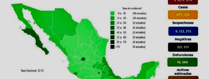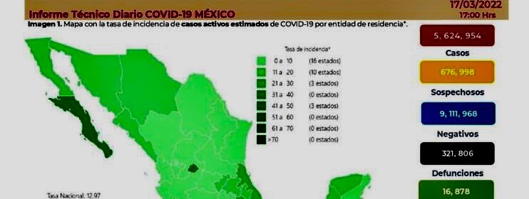 México suma 5 millones 633 mil 928 casos positivos confirmados acumulados y 322 mil 72 muertes por COVID-19. La Secretaría de Salud federal informó este sábado que México suma 5 millones 633 mil 928 casos positivos confirmados acumulados y 322 mil 72 muertes por COVID-19. En las últimas 24 horas, el país registró un total de 4 mil 114 contagios