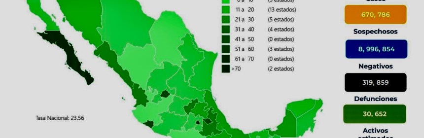 Secretaría de Salud informó este domingo que México suma 5 millones 564 mil 984 casos y 319 mil 859 muertes por Covid-19. La Secretaría de Salud informó este domingo que México suma 5 millones 564 mil 984 casos y 319 mil 859 muertes por COVID-19. En las últimas 24 horas, el país registró mil 905 contagios y 35 defunciones por el coronavirus SARS-CoV-2. La cifra