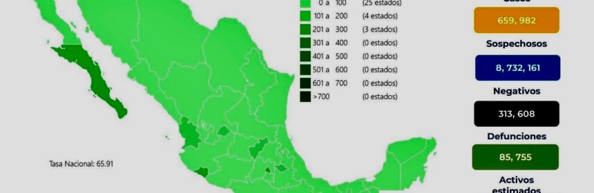 La Secretaría de Salud informó que México suma 5 millones 387 mil 854 casos y 315 mil 55 muertes por Covid-19. La Secretaría de Salud informó que México suma 5 millones 387 mil 854 casos y 315 mil 55 muertes por COVID-19. En las últimas 24 horas, el país registró 21 mil 449 contagios y 457 defunciones por el coronavirus SARS-CoV-2. Con estos datos,