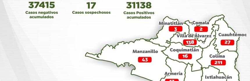 Registra Colima este día 46 casos nuevos y ningún deceso por Covid-19.