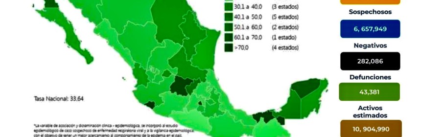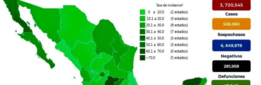 El país suma ya 3 millones 732 mil 429 casos y 282 mil 773 muertes por esta causa. La Secretaría de Salud informó que México suma 3 millones 732 mil 429 casos y 282 mil 773 muertes por COVID-19. En las últimas 24 horas, el país registró 7 mil 187 contagios y 546 defunciones por el coronavirus SARS-CoV-2. Con estas cifras, México se