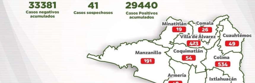 Nuestro estado llega a 29 mil 440 positivos y 2 mil 13 decesos acumulados por esta causa. Este día fueron 201 nuevos casos y 4 muertes por Covid-19 en la entidad, de acuerdo con el reporte de las instituciones del Sector Salud, que señalan que con el registro de estas cifras Colima llega a 29 mil 440 positivos y 2