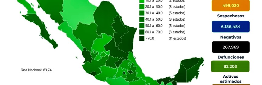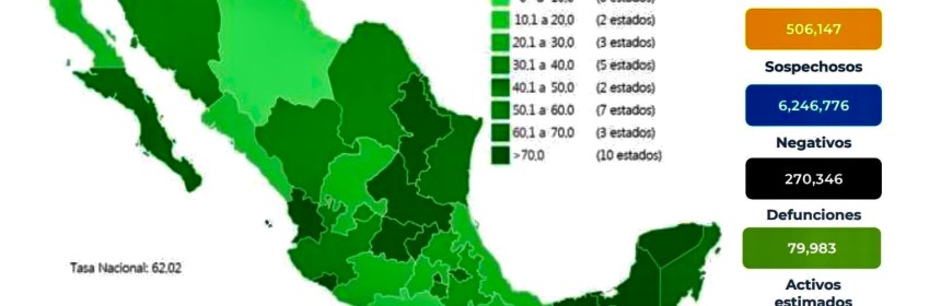 Este jueves México suma 3 millones 549 mil 229 y 270 mil 346 muertes por esta causa. La Secretaría de Salud informó este jueves que México suma 3 millones 549 mil 229 y 270 mil 346 muertes por COVID-19. En las últimas 24 horas, el país registró 7 mil 40 contagios y 434 defunciones por el coronavirus SARS-CoV-2. Con estos registros, México se mantiene como