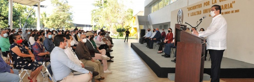 Al dar su discurso durante el Encuentro por la Unidad y Lealtad Universitaria, este domingo por la mañana en el campus central, el Rector de la Universidad de Colima, José Eduardo Hernández Nava comentó que esta Casa de Estudios es resultado del movimiento revolucionario, “luchando ha forjado su presente y luchando sentó las bases de su legado”, y que ésa es, en esencia, “la reflexión que