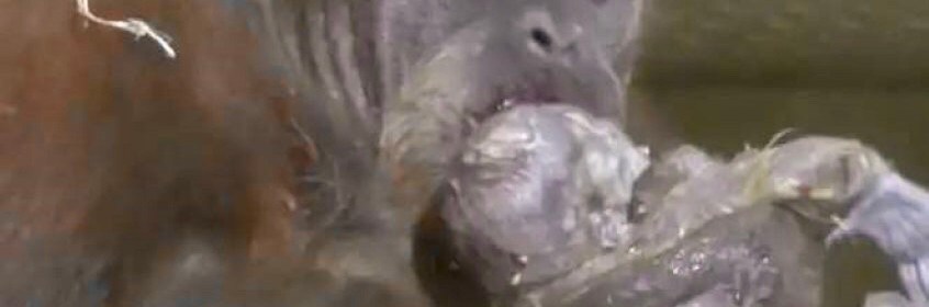 Graban el parto de una orangután en un santuario y emociona a sus cuidadores con su gesto.