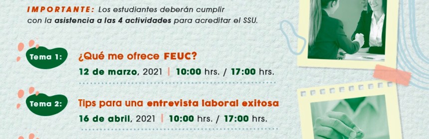 “FEUC, tu entrada al mundo laboral”, una serie de charlas y talleres en línea. La Federación de Egresados de la Universidad de Colima invita a la actividad “FEUC, tu entrada al mundo laboral”, una serie de charlas y talleres en línea en las que los estudiantes de los últimos semestres de cualquier carrera podrán conocer diversos temas de interés para