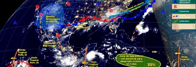 Lluvias puntuales torrenciales que podrían generar deslaves e inundaciones en Oaxaca y Chiapas. Este día, el monzón mexicano se mantendrá sobre el noroeste del país, originando lluvias puntuales muy fuertes en Sinaloa, Chihuahua y Durango. Así mismo, la Tormenta Tropical “Javier” se ubicará al oeste de Baja California Sur y originará lluvias puntuales intensas en dicha entidad. Por otra parte,