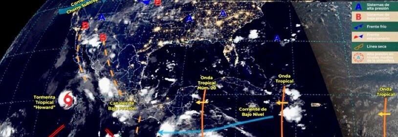 Lluvias puntuales intensas con descargas eléctricas y caída de granizo en zonas de Sinaloa, Nayarit, Nuevo León y Tamaulipas. Para hoy, el monzón mexicano sobre el noroeste de México, ocasionará lluvias puntuales intensas con posibles granizadas en Sinaloa y puntuales muy fuertes en Baja California Sur, Sonora, Chihuahua y Durango, que podrían originar incremento en los niveles de ríos y