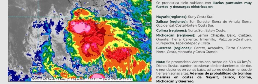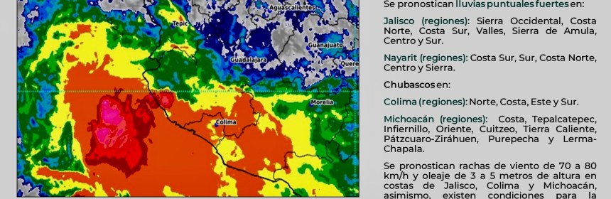 Colima con lluvias puntuales fuertes, descargas eléctricas y máximas de 30º a 35º C.