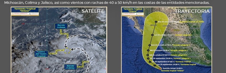 Cercanía de la Tormenta Tropical Orlene refuerza las lluvias en Michoacán, Colima y Jalisco.